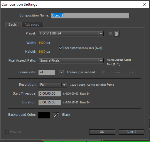 首先依照自己想要的規格、時間,開一個新的comp