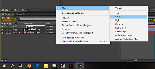對時間軸區域按右鍵,建立新的Solid當作背景