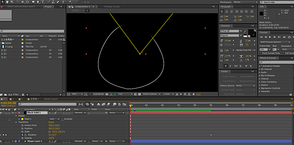 第二步:新建立Solid,使用鋼筆工具畫出圖形遮罩,可以剛好遮住底下的圖形即可,之後再對時間軸的Rotation設下關鍵
