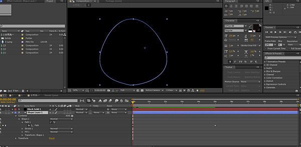 第一步:使用鋼筆工具畫出你想要的形狀,之後可以依照需求在時間軸的Path設下關鍵影格,在使用鋼筆工具對剛剛的圖形進行修改