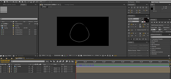步驟三:將兩個圖層選起,按下右鍵選擇 Pre-compose ,再開啟新的comp重複以上的步驟只是在圖形上和時間上要與之前的不同